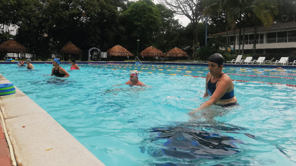 Practicar ejercicios en la piscina es la mejor manera de ejercitarse sin riesgo alguno, con 60 minutos de actividad física en piscina practicando una serie de ejercicios aeróbico adaptados al agua, trabajo de máquinas de gimnasio acuático (caminadoras, elípticas, bicicletas, jumps entre otras) y elementos de flotación que generan una mayor resistencia.
